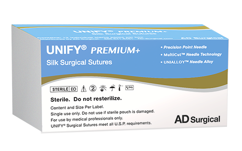UNIFY Premium+ Silk Surgical Sutures Size 5/0, 18" Thread with 19mm 3/8 Circle R/C Needle. Black. Box of 12.