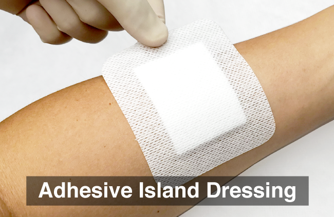 - Sterile Bordered Gauze Adhesive Island Dressings